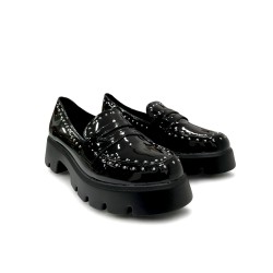 Slingback γόβες από λουστρίνι με μοντέρνο σχεδιασμό και διακοσμητική μεταλλική λεπτομέρεια στη μύτη.Διαθέτουν χαμηλό τακούνι 4cm και δέσιμο με λουράκι πίσω..