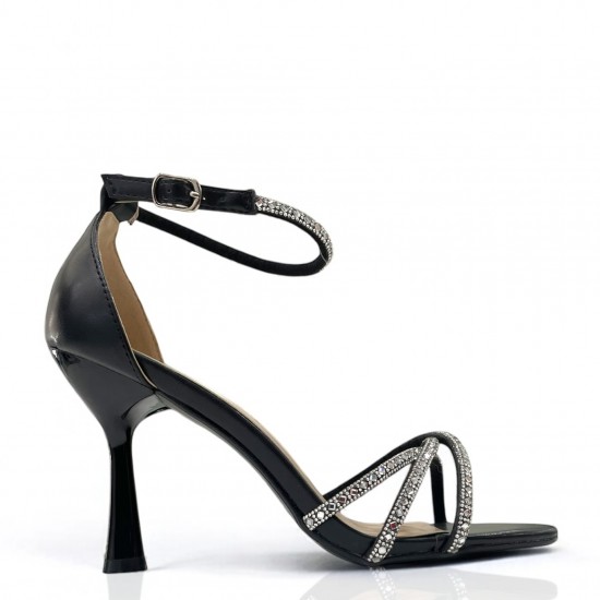 Πέδιλα με χιαστί λουράκια και strass σε Μαύρο
