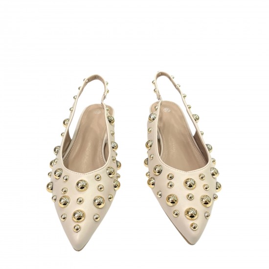- Model: Slingback studded flats in Beige